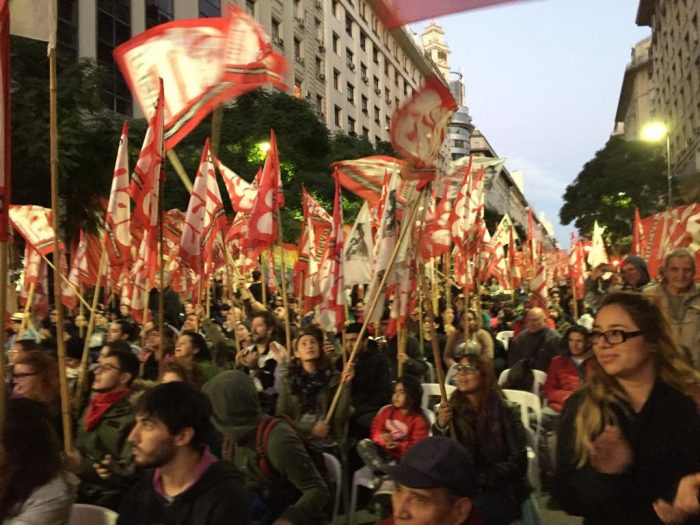 El Nuevo MAS acaba de finalizar un enorme acto militante en Diagonal Norte y 9 de Julio. El acto de nuestro partido se desarrolló en el contexto de una nueva intentona golpista en Venezuela contra Nicolás Maduro, la cual repudiamos sin darle ningún apoyo político al gobierno venezolano. Este acto también ocurrió en el contexto de una jornada nacional de lucha que se resultó en un paro nacional parcial que, a pesar de no haber sido convocado por la CGT oficial, en los grandes centros urbanos tuvo tal contundencia que parecía un día feriado. En el marco de esa jornada, el moyanismo y sus aliados realizaron un acto muy pobre con un contenido básicamente electoral lo cual terminó dando más fuerza a los actos de la izquierda.