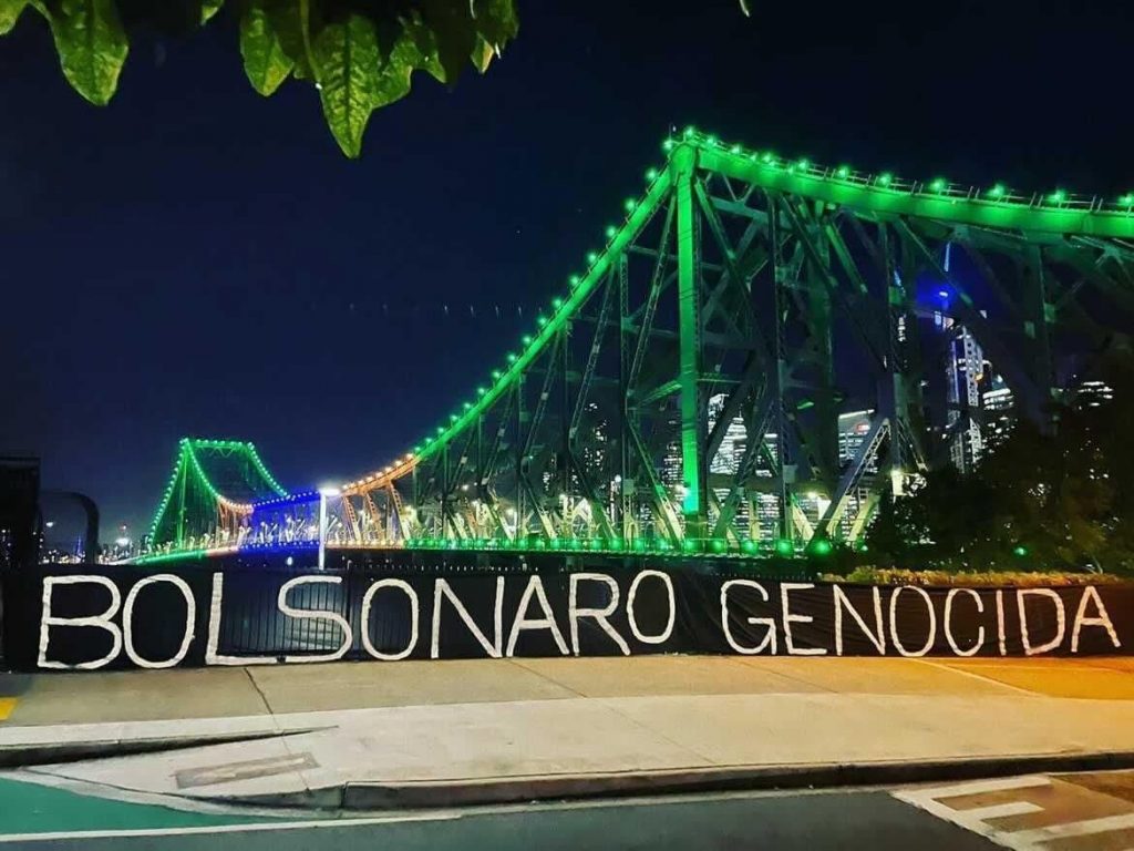 La creatividad popular no se hizo esperar. Artistas intervinieron espacios con consignas contra Bolsonaro.