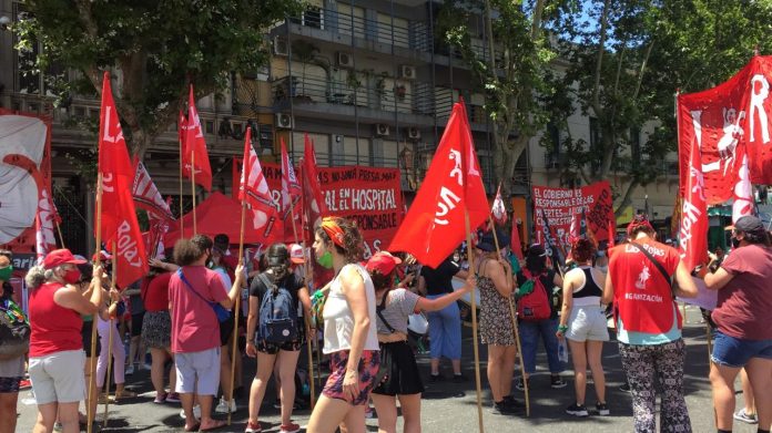 Por fuera, las columnas de las distintas organizaciones políticas, sociales y feministas despliegan sus banderas a lo largo de las calles aledañas. Sobre Callao están las columnas de las organizaciones peronistas, mientras que sobre Rivadavia se encuentran las banderas rojas de la izquierda, entre las que se destaca el enorme agite de la columna de Las Rojas, que no paró de cantar un segundo consignas por el aborto legal y rechazando la objeción de conciencia, un punto que ha desatado la polémica en las filas del feminismo.