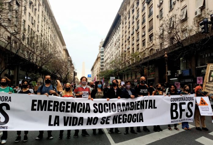 #Ahora llegando a Plaza de Mayo con Acción Ecológica Anticapitalista movilizando contra el acuerdo porcino con China que impulsa Felipe Solá y Fernández, y en rechazo a las quemas de humedales y desmontes, luego e que la policía intentara impedir el ingreso de les manifestantes. pic.twitter.com/IAfcLFKVhd