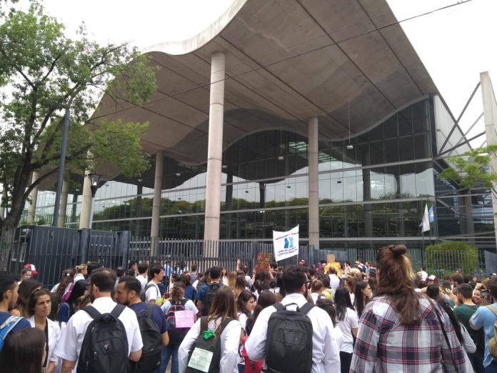 La masiva movilización de los residentes y concurrentes ha rodeado completamente la Jefatura de Gobierno porteño exigiendo que se vete la ley de esclavización laboral 2828. "Esclavizados no vamos a trabajar" cantan en la nariz del poder político.