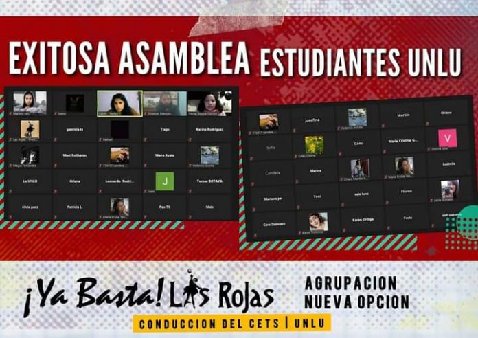En el marco actual de crisis social y económica, que se agrava debido al contexto de pandemia, se llevo adelante el pasado sábado la Asamblea de estudiantes de la UNLu, convocada por la conducción del CETS Las Rojas-Ya Basta-Nuevo MAS y Nueva Opción.
