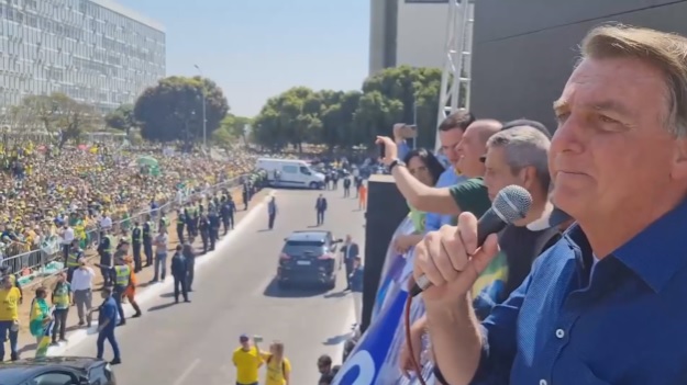 Lo hizo frente a unos cuantos miles que hacen a su base de extrema derecha en la explanada del Palacio del Planalto. Pretendió hacer del acto una tribuna de fortalecimiento golpista.