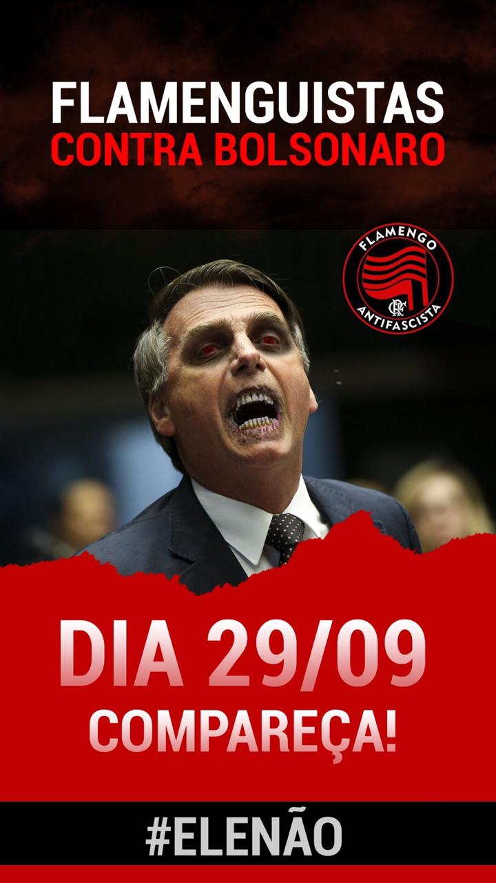 “La hinchada del flamenco es la más popular del país. Abarca todos los segmentos sociales, desde hombres y mujeres, blancos y negros, jóvenes y ancianos, pobres y ricos. Representamos al pueblo brasileño en su esencia. En este sentido, es inaceptable cualquier declaración prejuicios manifestada por Bolsonaro y su vicepresidente, Mourão, sobre todo las que tienen que ver con la población pobre, negra y a las mujeres, madres y abuelos. Al referirse a esa parte considerable de las familias brasileñas de manera chistosa e irrespetuosa, consideramos tal actitud una afrenta a la hinchada del flamenco, mayoría absoluta en río de Janeiro y Brasil. Además de estas cuestiones, creemos que las propuestas económicas de esta candidatura fascista a la presidencia de la República significa empujar aún más a la población más pobre a la miseria, destruyendo la frágil estructura de asistencia social existente en el país. Las privatizaciones y el corte presupuestarios, propuestos por Pablo Guedes, significa profundización de las políticas neoliberales que se han aplicado por Temer, en Brasil, y por Macri, en Argentina, promoviendo una crisis social sin precedentes. Es decir, Bolsonaro es una continuación más profunda de la política nefasta que hoy se aplica contra la clase trabajadora. Llamamos a las torcidas organizadas del Flamengo a rescatar sus orígenes de resistencia a los ataques al pueblo, sobre todo durante la dictadura militar, a defender la democracia y los derechos de la clase trabajadora.”