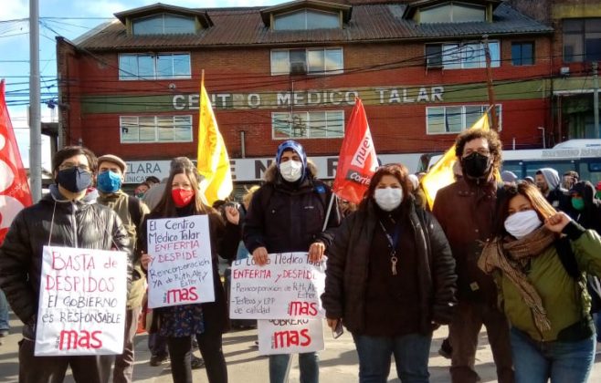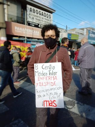 En horas de la mañana se realizó una concentración en la puerta del Centro Médico Talar de Pacheco, en 197 y panamericana, con la participación de trabajadores, familiares y distintas organizaciones de izquierda como el Nuevo Mas, la Corriente Sindical 18 de Diciembre, entre otras, exigiendo la reincorporación de las enfermeras despedidas por denunciar las irregularidades de la clínica ante la falta de EPP de calidad y reclamar testeos al personal y usuarios, luego de un brote de más de 40 trabajadores infectados.