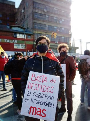 Ruth Leites, una de las trabajadoras despedidas, que se encuentra a la cabeza de la protesta, ya que sus compañeras están en aislamiento, incluso dos de ellas internadas, por contagiarse coronavirus en su lugar de trabajo, expresó “hoy la situación se agrava con la internación en terapia intermedia de dos familiares de mis compañeras despedidas, Ester Galarza y Ale Sotelo (…). Es una masacre lo que están haciendo con nosotras, es desgarrador saber que los familiares de las chicas ahora también están mal, uno no puede hacer nada y encima estamos en la calle”.