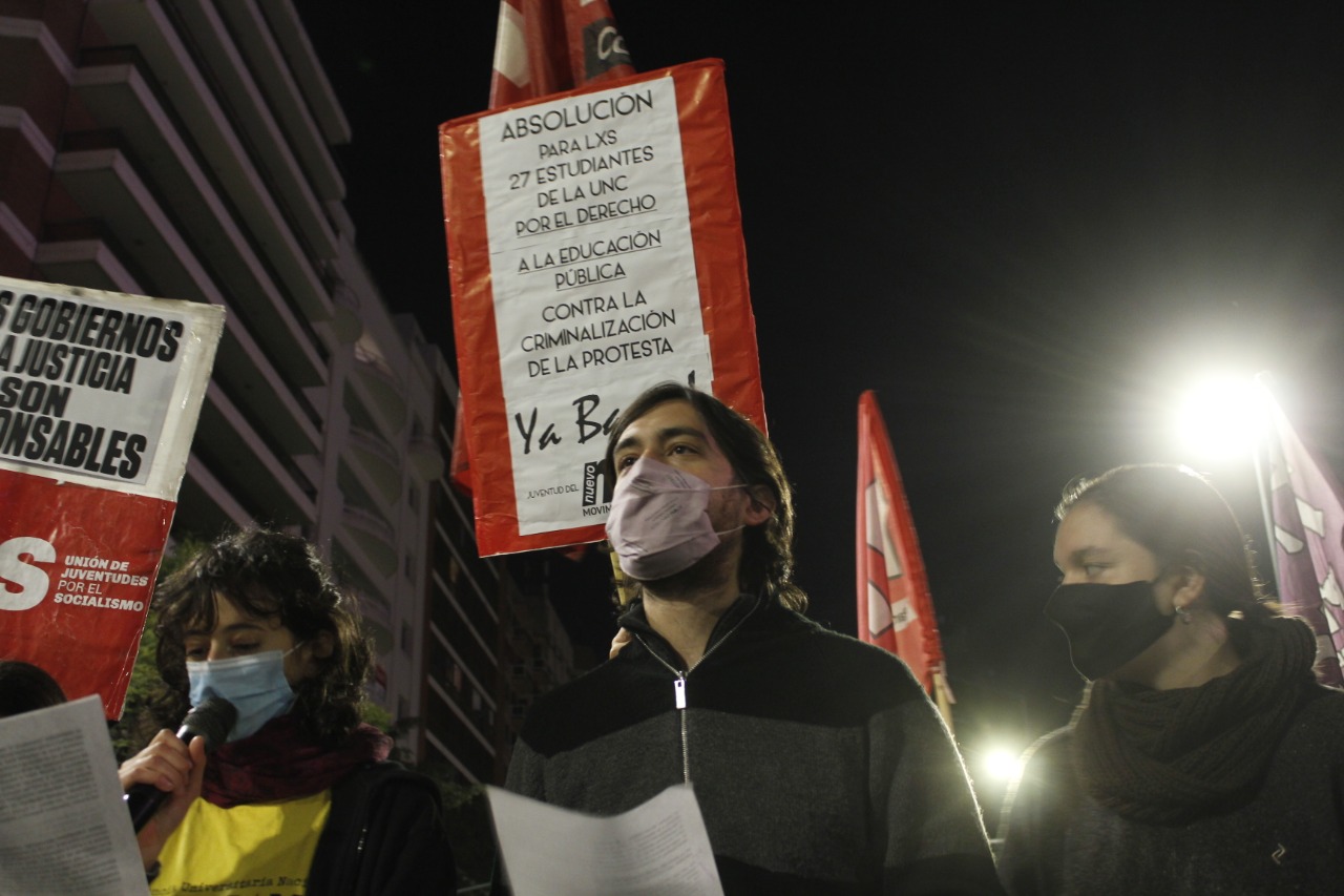 Desde el ¡Ya Basta! Y el Nuevo MAS, junto a Franco Bergero, compañero procesado y militante de nuestra agrupación, invitamos a rodear de solidaridad esta lucha y a seguir en las calles hasta derrotar el juicio! En todo el país estuvimos presentes en las calles diciendo ¡Absolución ya de lxs 27 estudiantes de la UNC! Luchar en defensa de la educación pública no es delito. ¡El gobierno y la Justicia son responsables!