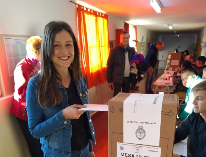 La candidata del Nuevo MAS a diputada nacional por Córdoba Julia Di Santi votó durante la mañana en la escuela de Alta Córdoba.