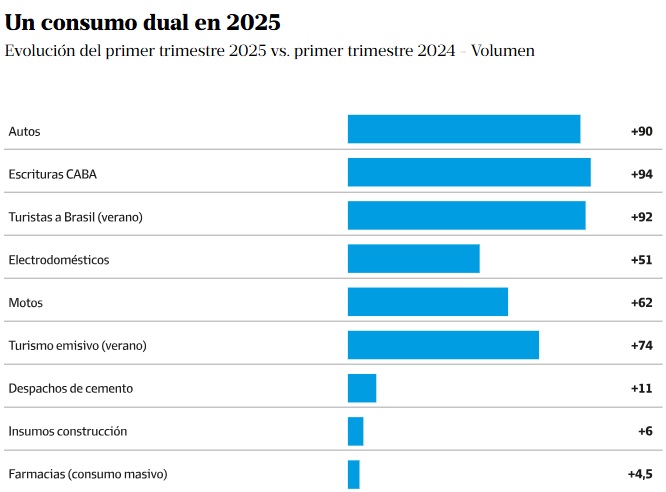 Si este mes llegase a mostrar un resultado neutro, se debe principalmente a la baja base de comparación que representa 2024, un año completo de gestión mileísta. Los números anuales en materia de consumo son penosos: en 2024, las ventas en supermercados bajaron un 11% respecto de 2023. Y ese año ya era de crisis con la espiral inflacionaria.
