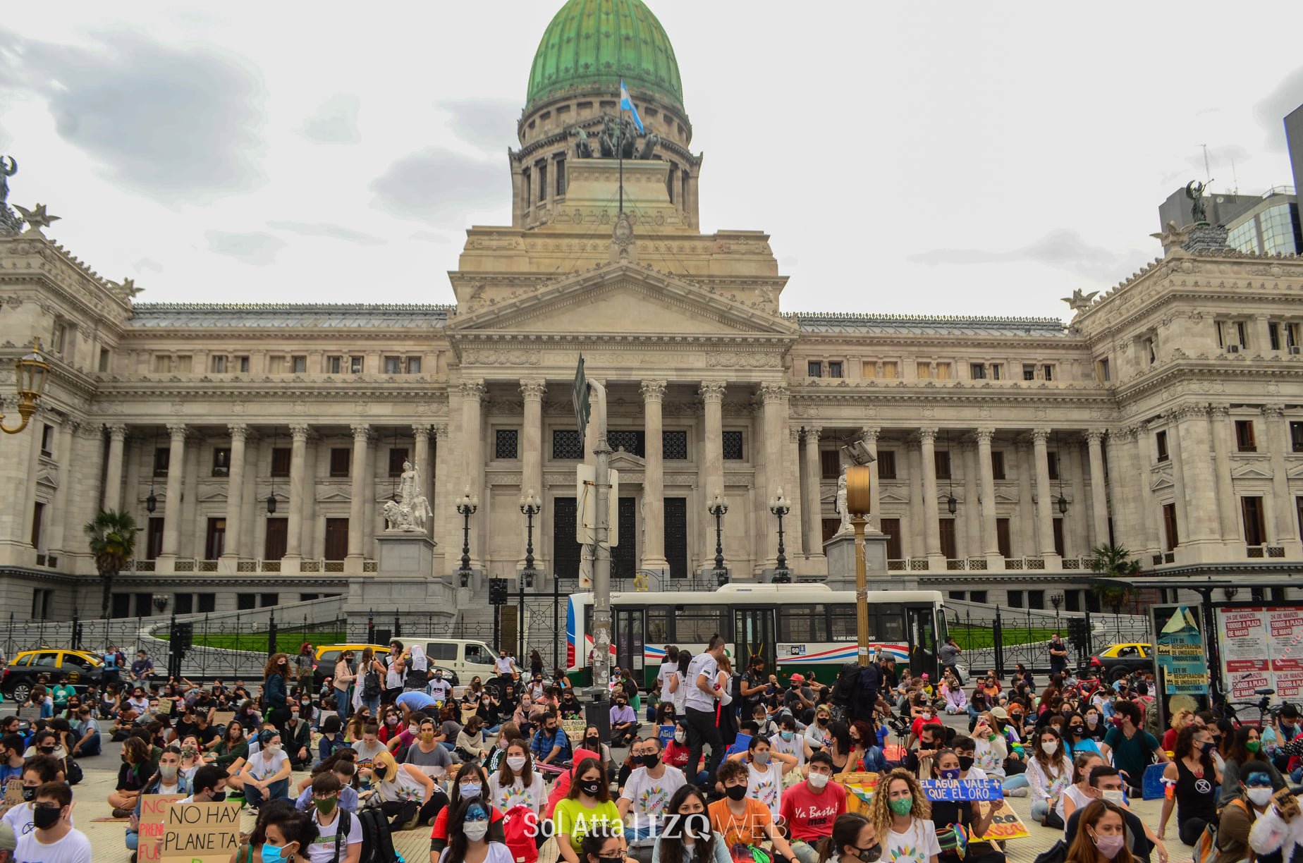Luego de una concentración y sentada en las puertas del Congreso, miles de jóvenes se movilizaron a Plaza de Mayo. Varias cuadras de personas se solidarizaron con los reclamos del pueblo chubutense contra la megaminería y denunciaron también el fracking y el agronegocio, así como los incendios forestales intencionales, impulsados por los capitalistas del campo para ampliar la frontera agraria.