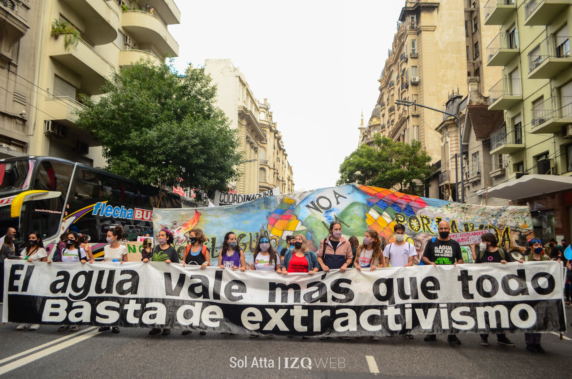 «El agua vale más que el oro» fue una de las consignas más repetidas en las pancartas y carteles. Esa enseña circula a lo largo del país desde los enfrentamientos populares contra la instalación de las megamineras en el interior del país.