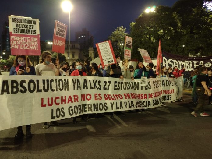 La pelea por la absolución de les 27 estudiantes, no es ajena a todos los enfrentamientos contra la represión y ajuste que imponen los gobiernos hacia el pueblo. Agradecemos a todes quienes se solidarizaron desde que empezó esta criminalización, solo en la clase trabajadora confiamos, solo luchando avanzamos, arriba la unidad de les que luchan, viva la unidad obrera estudiantil.
