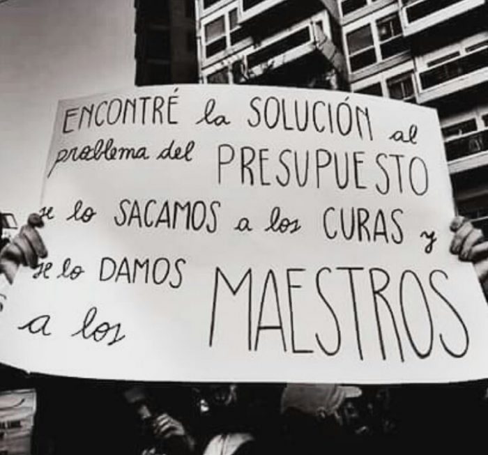 «Encontré la solución al problema del presupuesto. Se lo sacamos a los curas y se lo damos a los maestros»