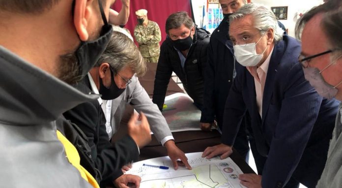 La comitiva encabezada por Alberto Fernández se trasladó en combis al Centro Cultural de Lago Puelo, ubicado al noroeste de la provincia del Chubut. El presidente se hizo presente con la excusa de supervisar el trabajo de los más de 200 brigadistas que se encuentran enfrentando la propagación de los incendios, varios de los cuales han acudido desde otras provincias a colaborar en el combate de las llamaradas.