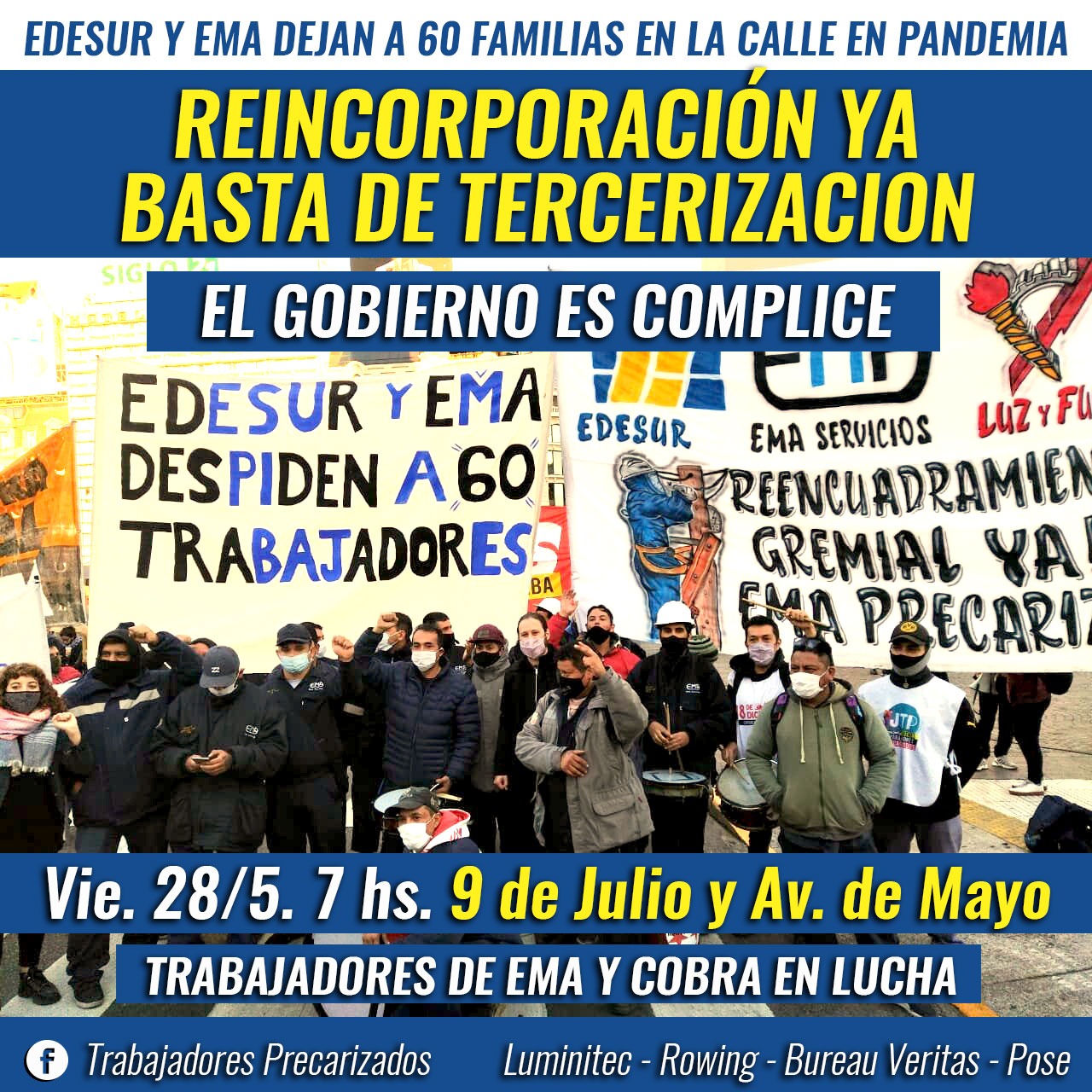 Creemos que nuestro reclamo no puede esperar más. El Estado tiene las herramientas para dar respuesta al conflicto obligando a Edesur (empresa madre) a reincorporarnos como planta permanente y estableciendo nuestro encuadramiento gremial correspondiente. Este reclamo se hace extensivo a los compañeros también despedidos de Argencobra y demás contratistas