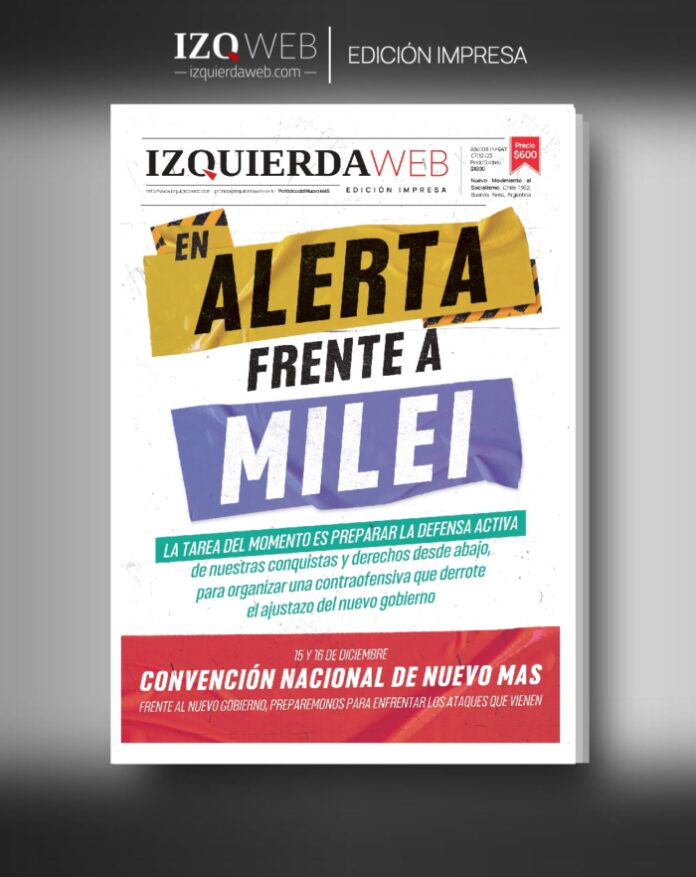 PublicacionesIzquierda Web Edición ImpresaEn alerta frente a Milei | Izquierda Web Edición Impresa 647La tarea del momento es preparar la defensa activa de nuestras conquistas y derechos por abajo, para organizar una contraofensiva que derrote el ajustazo del nuevo gobierno.Por IzquierdaWeb - 7 diciembre, 202308164🔊 Escuchar el Artículo 647Leerlo en PDFSuscribite a Izquierda WebSeguir leyendo:Milei: una declaración de guerra contra la clase trabajadora | Izquierda Web Edición Impresa 639Una corrida contra el salario | Izquierda Web Edición Impresa 633El capitalismo no va más | Izquierda Web Edición Impresa 627Conflicto histórico en el Neumático | Izquierda Web Edición Impresa 621