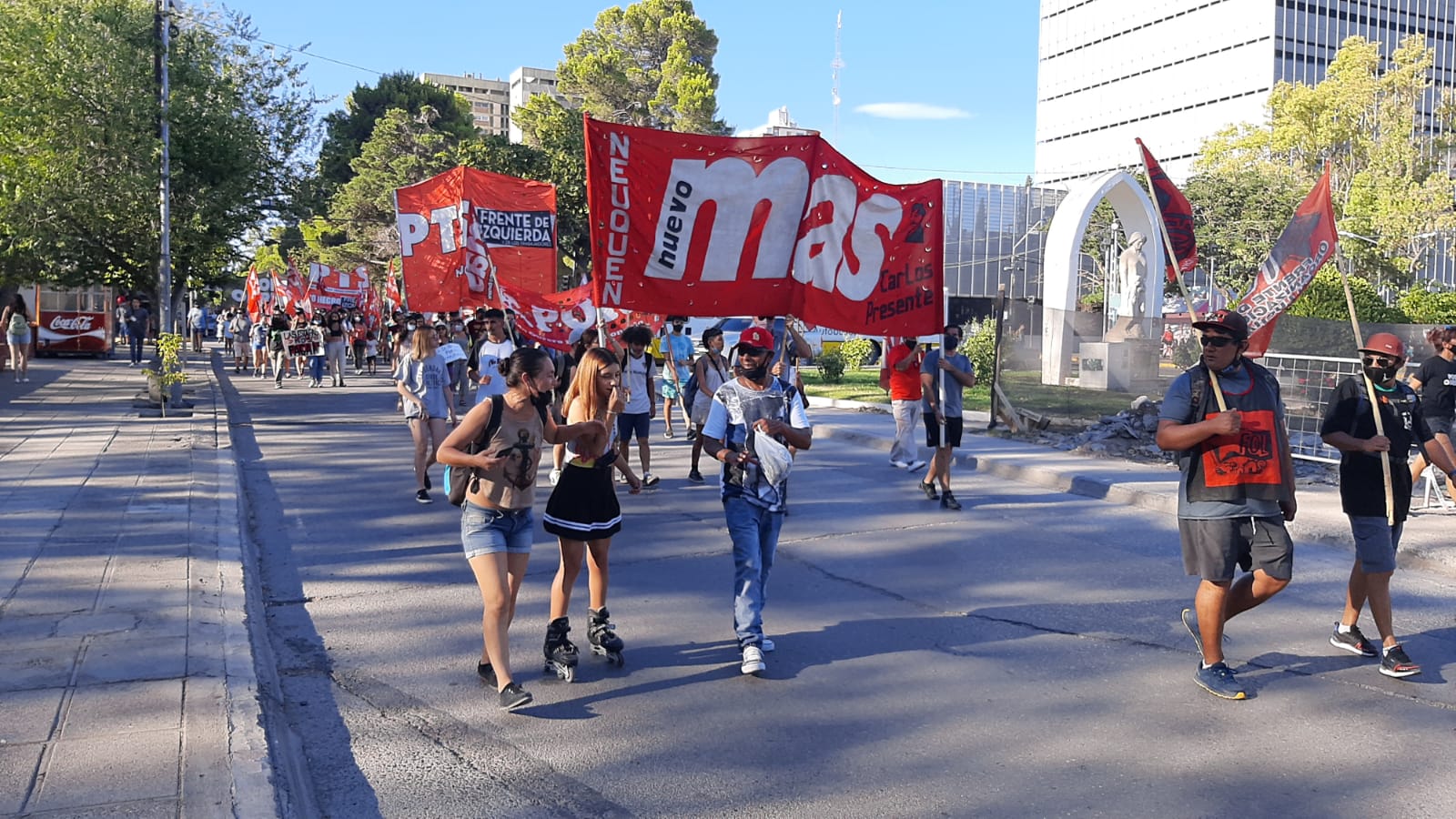 Desde las 18hs de este martes concentraron distintos sindicatos como ATEN, Sindicato Ceramistas y Judiciales, y que junto a organizaciones sociales y partidos políticos como el Nuevo MAS conformaron la larga columna de la movilización.