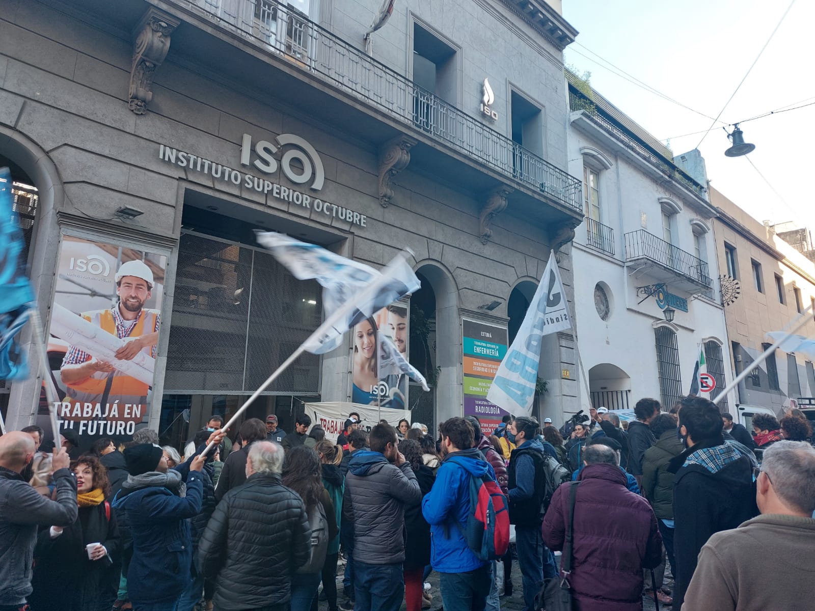 La concentración fue convocada por el Sindicato de Prensa de Buenos Aires, SiPreBA. Acudieron decenas de trabajadores, cansados de los salarios de miseria de Página 12 y el Grupo Octubre.