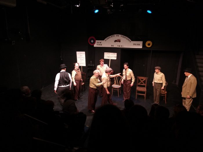 A sala llena, Esperando al zurdo nos invita a formar parte de una asamblea de taxistas estadounidenses de la década del 30, bajo el plan New Deal del presidente Roosevelt, en medio de esa gran crisis del capitalismo.