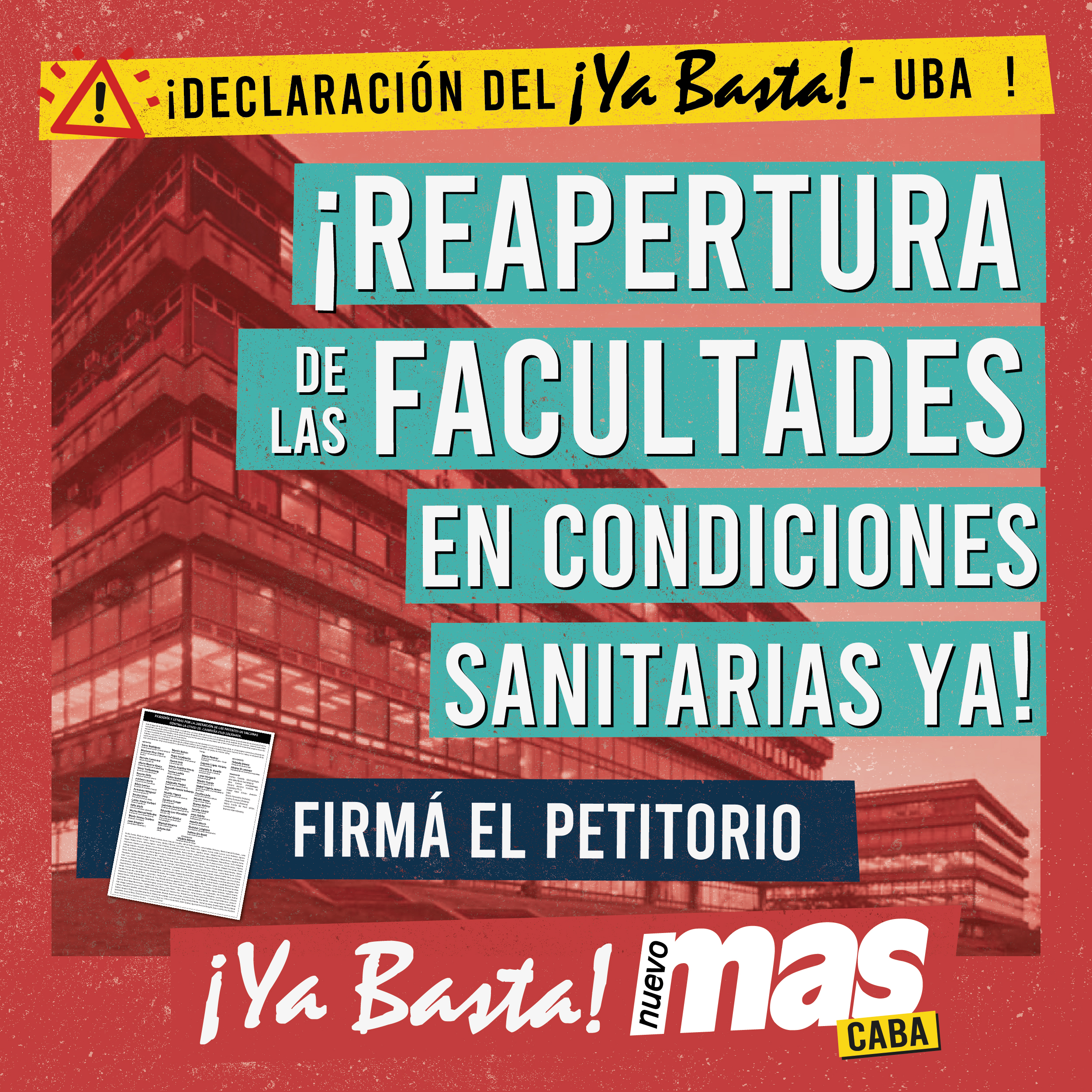 No podemos seguir más tiempo con las universidades cerradas. Desde el ¡Ya Basta! llamamos a la juventud de la UBA a poner de pie al movimiento estudiantil para pelear por esta perspectiva, contra el abandono educativo y por el derecho a la educación.