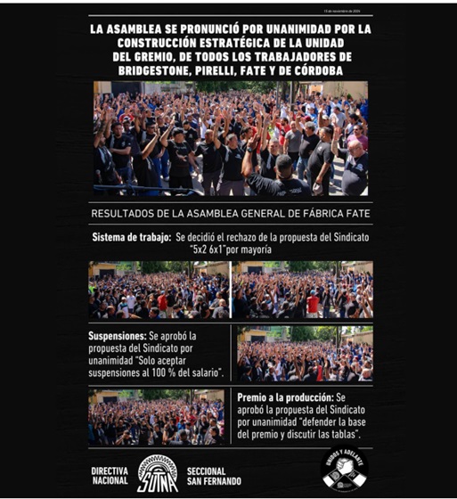 En realidad, no hubo ningún debate sobre “la construcción estratégica de unidad del gremio…” Obvio que se votó por unanimidad la unidad del gremio, pero la realidad es que la estrategia del gremio para luchar contra los despidos fue enfrentarlos fábrica por fábrica, como si los despidos fueran una cuestión particular de cada empresa y no un ataque generalizado, como ha quedado demostrado por la realidad desde el despido de Facundo Diaz en noviembre del 2022.