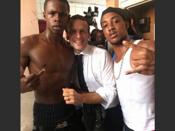 Por su parte, Macron ya había hecho el ridículo esta semana cuando en un viaje a las Antillas para visitar a las víctimas del huracán Irma, se sacó una selfie junto a dos jóvenes, uno de ellos siendo un ex preso por robo recién salido de prisión y el otro posando con el torso desnudo y haciendo el gesto del « dedo de honor », situación que irritó a la derecha y a la extrema derecha francesas que lo interpretaron como una ofensa a la investidura presidencial. Marine Le Pen aprovechó para descargar toda su furia reaccionaria tildando este hecho de « imperdonable » y declarando « no encontrar palabras para expresar su indignación » ante semejante ofensa a «Francia ».