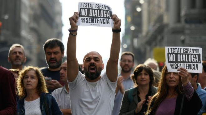 A primera hora de la mañana se dio a conocer el fallo y la respuesta en la calle no se hizo esperar. Miles de personas han venido a cortar las arterias principales de Barcelona, como la Avenida Diagonal, La Meridiana, Vía Laietana, mientras que también cortan carreteras en otras partes del territorio como Girona, Valls o Mataró. En Barcelona a las 12h, diferentes columnas estudiantiles de varios colegios y universidades se han reunido en Plaça Catalunya.