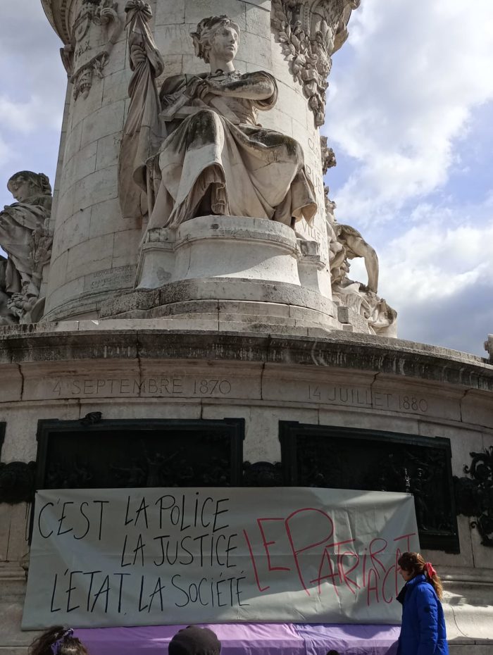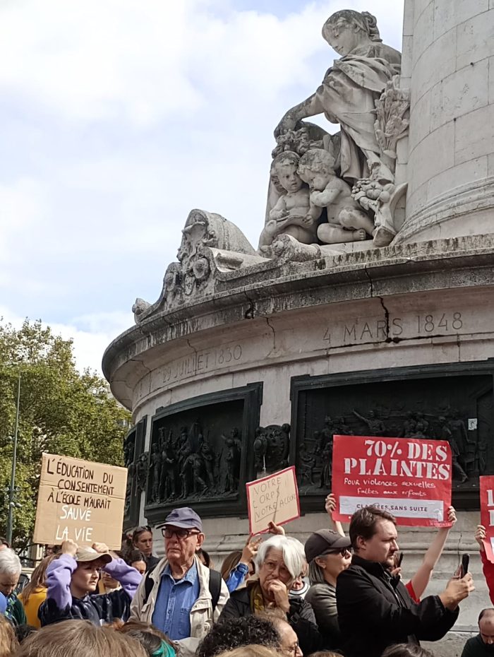 En la tribuna del acto à Place de la République la presidenta de la Fondation des Femmes Anne Cecille Mailfert hizo un llamado a una ley integral contra la violencia. La ONG estima que se necesitan 3 millardos de euros (que representan 0,3% del presupuesto del país) para los programas de acompañamiento de víctimas y de protección de las infancias y para poner en seguridad las mujeres victimas de violencia sexual.