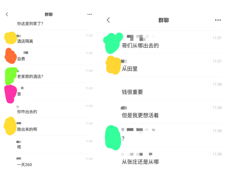 Uno de los trabajadores que escaparon comparte su experiencia con sus compañeros en Wechat. Mensajes: