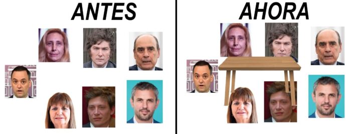 Durante todo el lunes la mesa chica del gobierno buscó alguna forma de reaccionar ante la crisis política y económica. Al parecer, la mejor idea que tuvieron fue agregarle una mesa a la reunión habitual (¿será que se reunían de parado?). Como mínimo puede decirse que la monstruosa ultraderecha libertaria sigue siendo una fuente inagotable de memes.