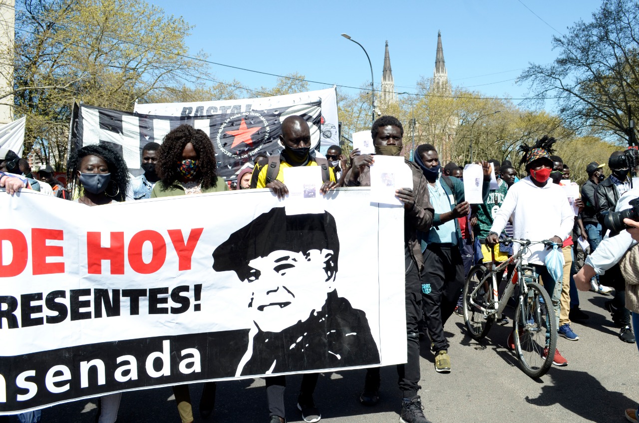 Por otra parte, fue muy significativa la participación, por primera vez en una marcha por López, de la mayoría de la comunidad senegalesa que viene sufriendo en forma permanente el hostigamiento de la policía y del gobierno municipal de Garro. Les pegan, los llevan detenidos, les incautan mercadería, todo por querer ganarse el pan con su trabajo callejero. Nos solidarizamos con ellos y exigimos que se termine el hostigamiento y que los dejen trabajar.