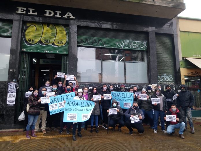 En el marco de una nueva audiencia paritaria, la FATPREN convocó hoy, al igual que la semana pasada, a un paro nacional de trabajadoras y trabajadores de prensa. En La Plata se llevó a cabo una concentración y “choriceada” en la puerta del Diario El Día, el principal medio de la región, para exigir aumento salarial a las patronales nucleadas en ADIRA.