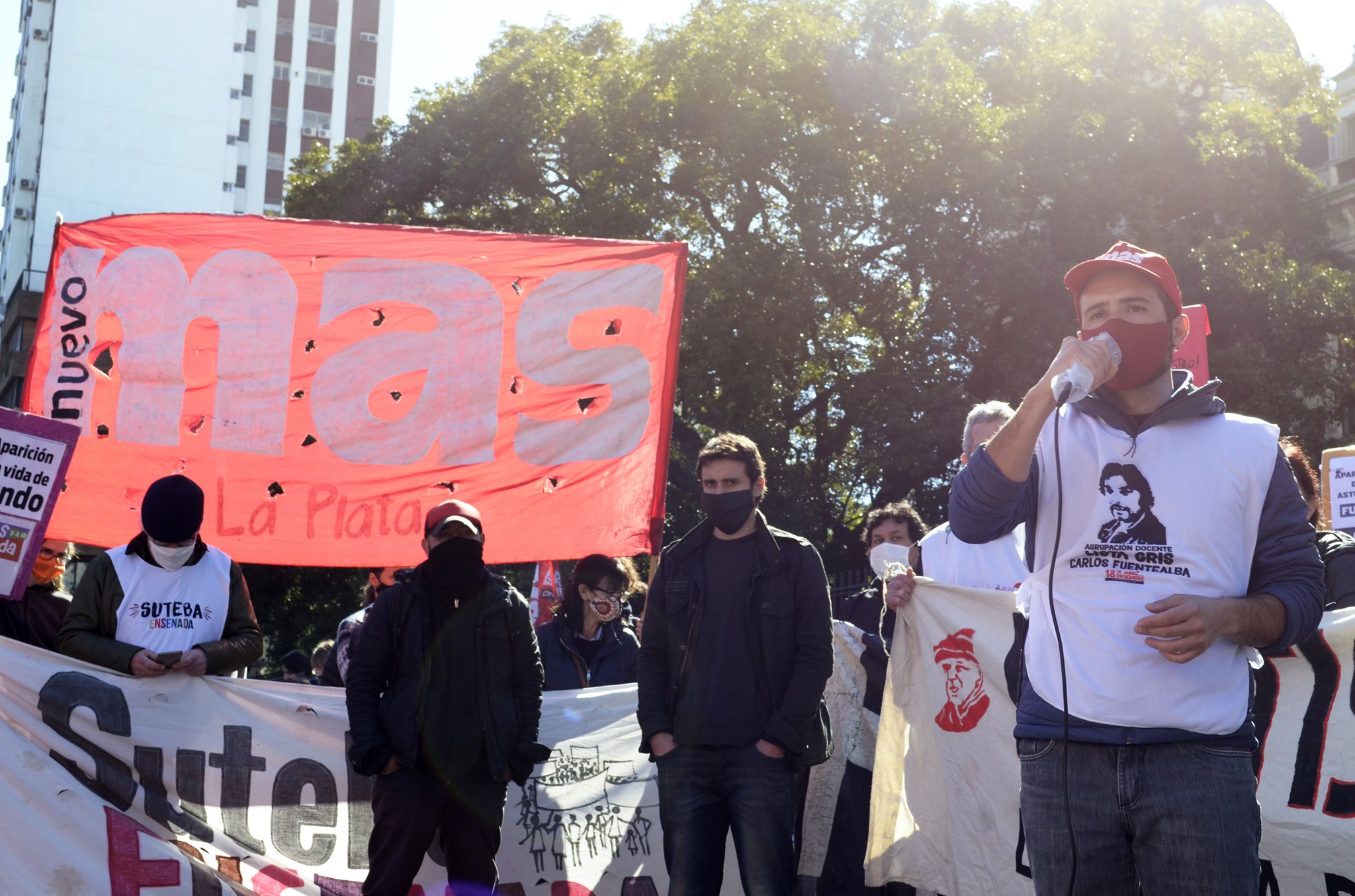 El Nuevo MAS participó con fuerza con una nutrida columna y en el acto hizo uso de la palabra el dirigente regional del partido y referente docente de la Lista Gris, Eric “Tano” Simonetti planteando la necesidad de llamar a un plenario que sirva para poner en pie una gran campaña política para continuar en las calles por la aparición con vida de Facundo, exigir que caiga Berni y que no haya ocultamientos en la causa.