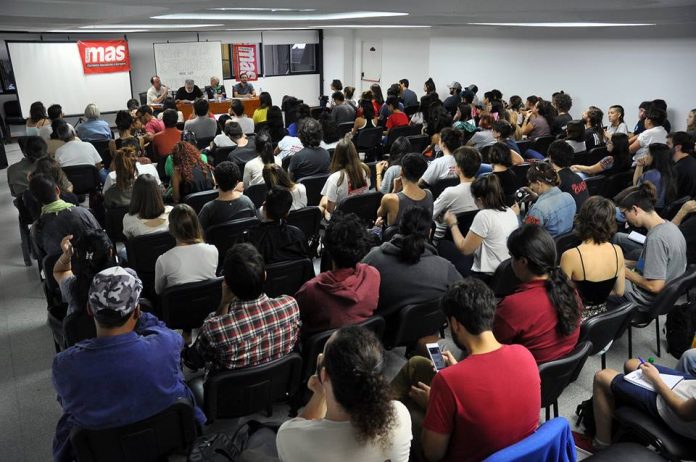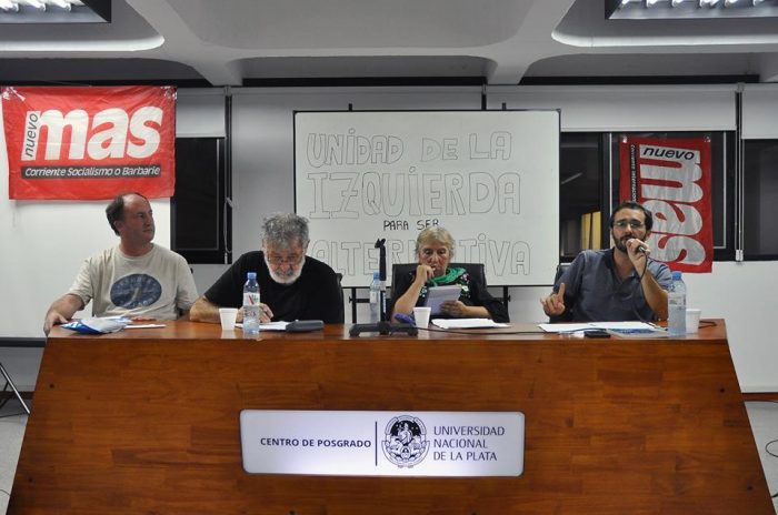A sala llena se realizó ayer por la tarde en el Edificio Karakachoff de la UNLP la charla debate titulada «Unir a la izquierda para ser alternativa», que contó con un panel integrado por el dirigente regional del Nuevo Mas, Eric «Tano» Simonetti, la referente feminista y referente del Frente Popular Darío Santillán – Corriente Nacional, Celina Rodríguez, y el sociólogo marxista Pablo Bonavena.