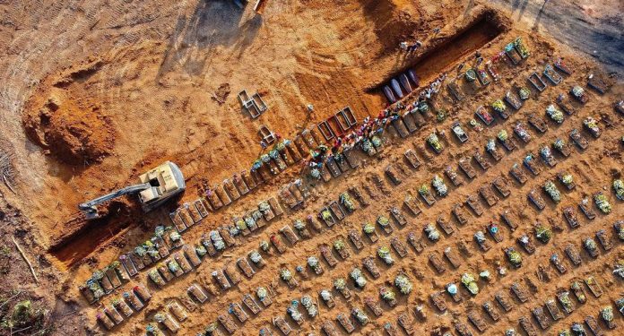 Afirmamos y enfatizamos que el negacionismo de Bolsonaro se extrapola a un genocidio, y la imagen, capturada en Manaos el día de hoy, no podría representar mejor el escenario de la curva ascendente de expansión del virus (exponencial, o sea, se triplican los números cada semana de infectados). Números que, según estudios de investigadores de diversas universidades brasileras, pueden ser entre 12 y 15 veces mayores a los reconocidos. Eso ocurre por la baja capacidad de testeo de Brasil, apuntada como la principal causa de escasa notificación, como admitió el ex-ministro Luiz Henrique Mandetta, figura que construyó en los últimos años el desmonte del sistema público de salud.