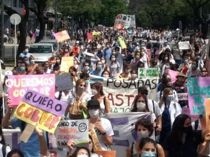 Después del paro y marcha del jueves pasado hasta el Ministerio de Salud de Nación, donde llevaron sus reclamos de pago inmediato a los ingresantes que llevan más de 100 días sin cobrar, aumento de salarios y recategorización, este jueves 17 vuelven con una marcha al ministerio para exigir una respuesta de Ginés Garcia y sus funcionarios.