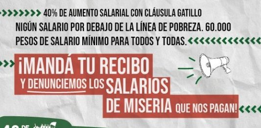 🔊 Escuchar el Artículo ¡MANDANOS TU RECIBO Y VIRALICEMOS QUE NOS PAGAN MISERIA! La gran mayoría de los trabajadores estamos trabajando para estar debajo de la línea de pobreza ¡Laburamos desde 8 o 9 horas diarias o hasta 12 o más para que no nos alcance para nada! Encima los burócratas sindicales dicen que recuperamos … Sigue leyendo ¡Mandanos tu recibo y viralicemos que nos pagan miseria!