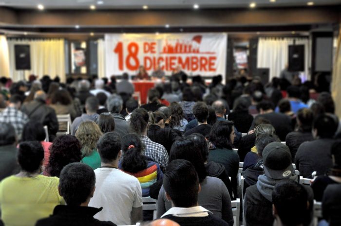Con delegaciones del Hospital Posadas, de la Lista Marrón del Neumático, docentes de diversas provincias incluyendo directivos de SUTEBAs recuperados, SMATA, de ATE, Camioneros, UPCN, UOM, del Vidrio (la Marrón de Pilkington), Químicos, de Molinos Minetti, Judiciales Clasistas, Bancarios, del Plástico, textiles, de la UTA, despedidos de la línea Este de La Plata, Línea 144, de la Unión Ferroviaria, Municipales, de la secretaría de DD HH ubicada en La Plata, de la Defensoría del Pueblo de Buenos Aires, Promoción Social, Hospital de Niños de Córdoba, del Garrahan, Ministerios de Agroindustria y Economía, IOMA, se abrió el Plenario de Fundación de la 18 de diciembre en las salas del Hotel Bauen. Estas delegaciones reflejaron claramente a la nueva generación de luchadores que ha surgido en los últimos años en los lugares de trabajo. Pero también estuvieron presentes compañeros que reflejan una enorme tradición de lucha: el “Chino” Heberling, dirigente de la lucha ferroviaria en los 90’, Alcides Christiansen, secretario general de la histórica UOCRA Naranja de Neuquén y Aurelio Vázquez, del sindicato docente de Río Negro.