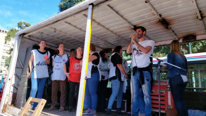El acto se realizó en el marco de los respectivos paros llamados por la Multicolor de Suteba, UTE y ADEMyS de CABA y la heroica huelga de los docentes de Santa Cruz. Las medidas de fuerza fueron rotundas y se hicieron notar en todas las escuelas.