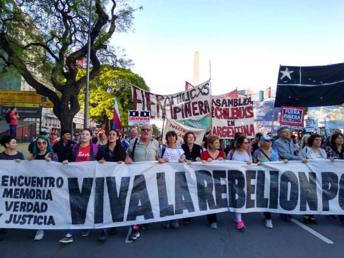 Por eso desde el Encuentro Memoria, Verdad y Justicia saludamos al pueblo hermano chilenoen lucha y decimos: ¡Fuera el FMI de Latinoamérica! ¡Viva la rebelión en Chile!