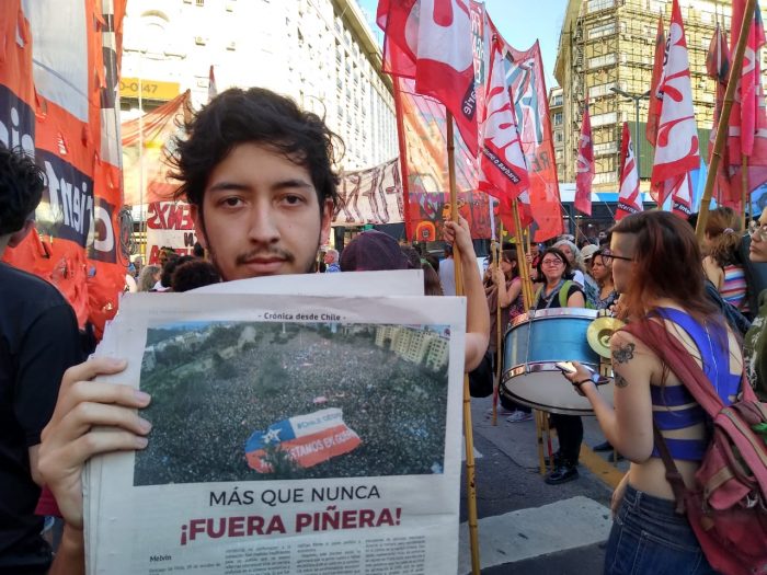 Compañeros y compañeras: la lucha del pueblo chileno es la lucha de todos los pueblos de Latinoamérica por encontrar un destino sin opresión y liberarnos de las políticas de ajuste.