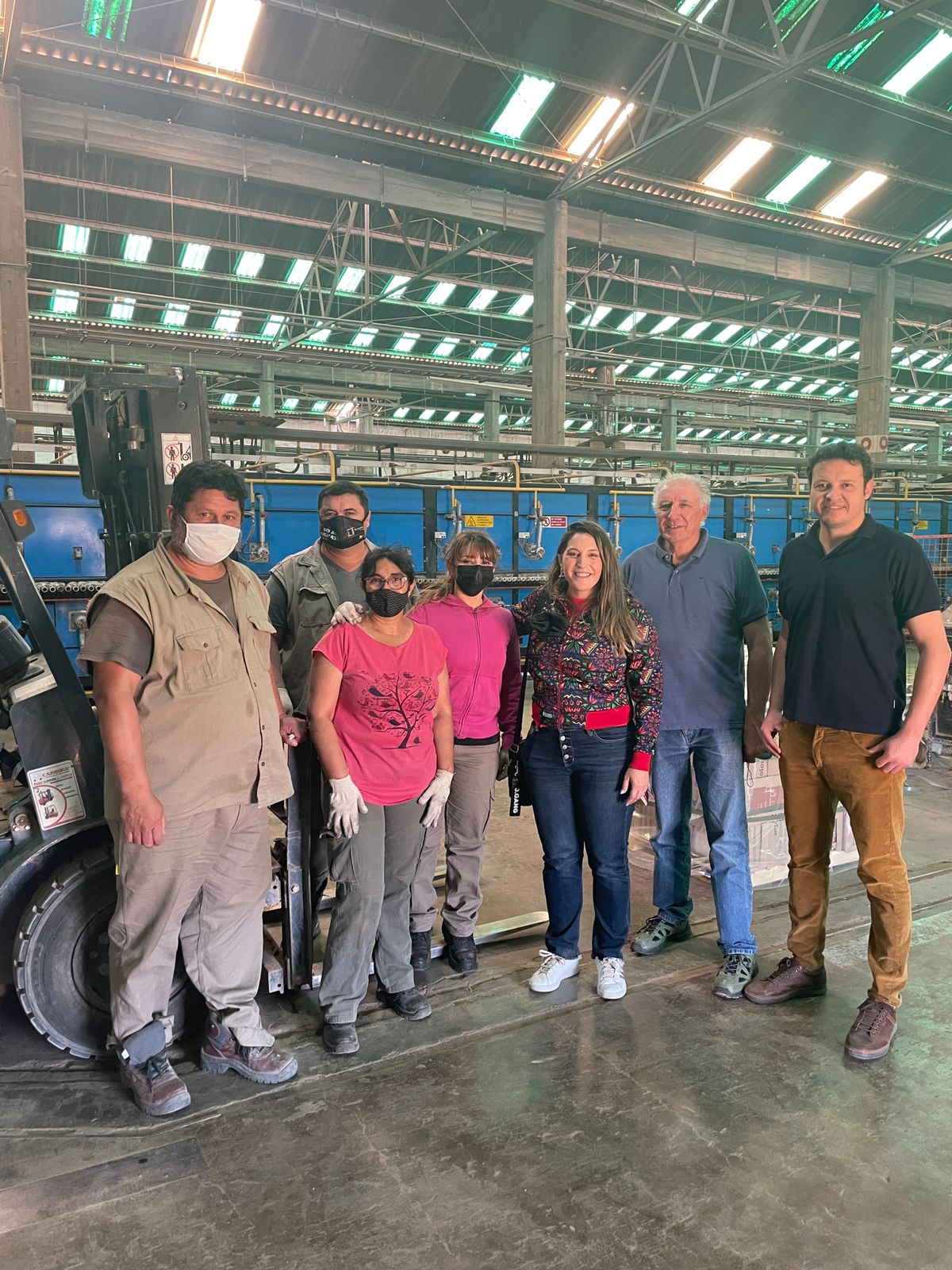 Acompañada de los candidatos locales Lucas Ruiz y Alcides Christiansen, quienes competirán en las elecciones municipales del próximo domingo por las listas del Nuevo MAS, Castañeira recorrió la fábrica y dialogó con los obreros.
