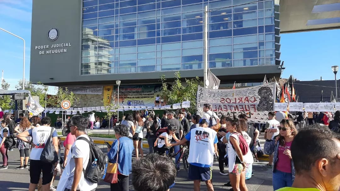 En un comunicado, la Lista Gris Carlos Fuentealba contó que «nos encontramos junto a distintas organizaciones sociales y la docencia en el marco del paro de #Aten, convocado ante el inicio de las audiencias por la causa Fuentealba II».