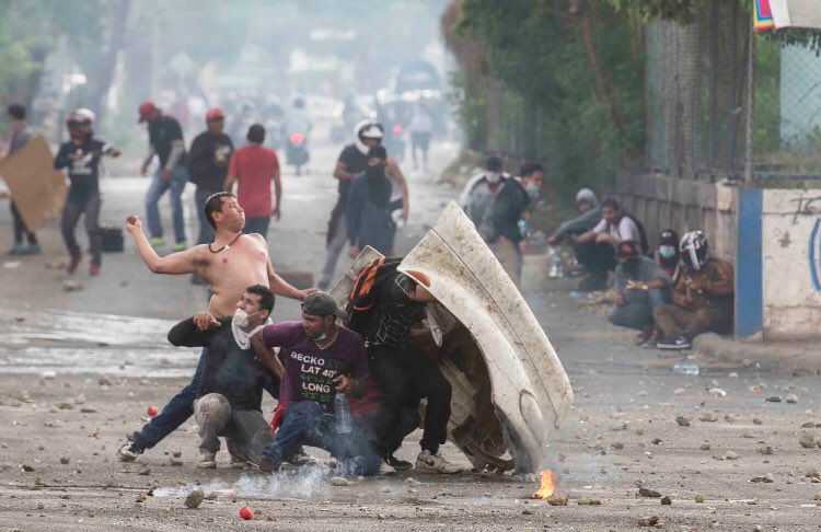 El régimen se mantiene debido a la represión militar y lo ejerce a través de la policía y de las fuerzas paramilitares, que, aunque ya no andan como en junio, julio o agosto del 2018 siguen existiendo. Estos cuerpos ahora andan con armas cortas y siempre movilizándose en camionetas Hilux o motorizados, ejercen la represión en conjunto con la policía. Es decir, la situación sigue complicada en el país, en vista de esa represión brutal y de la masacre ejercida por el régimen y la prohibición de muchos derechos, la población se ve inhibida de salir a protestar.