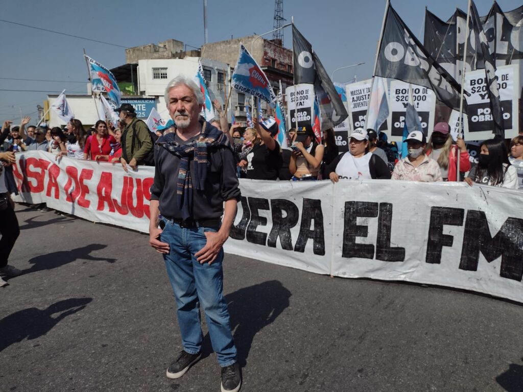 Héctor «Chino» Heberling, dirigente del Nuevo MAS, declaró en el marco de la movilización: “Estamos en la estación Avellaneda, acompañando esta gran movilización de los movimientos piqueteros al Ministerio de Desarrollo Social por la exigencia de que den marcha atrás con los planes dados de baja”