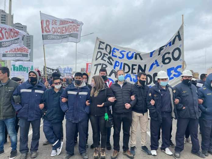 #Ahora en Puente Pueyrredón junto a los trabajadores de EMA #Edesur despedidos por luchar contra la precarización laboral.Reclaman volver a sus puestos de trabajo y exigen el fin de la precarización que es uno de los grandes problemas que tiene la clase trabajadora en argentina. pic.twitter.com/VkFt1zJok2
