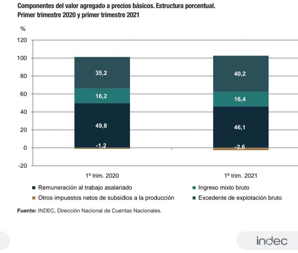 Así lo muestra este dato del INDEC sobre los componentes de valor agregado en los precios básicos: