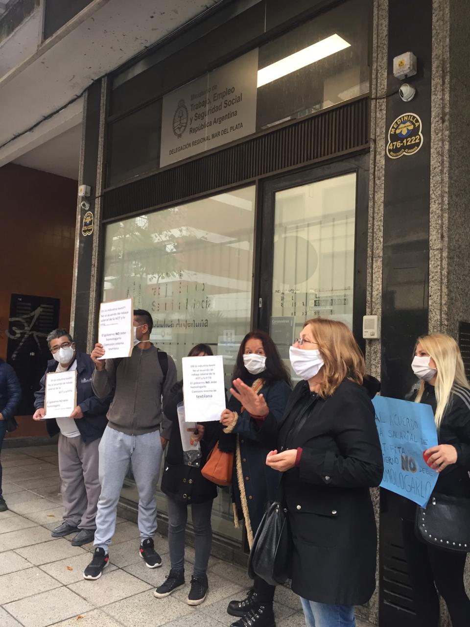 Este lunes veintisiete de abril, un grupo de trabajadores de la fábrica Textilana se manifestó en las puertas de la sede marplatense del Ministerio de Trabajo de la Nación, acompañados por organizaciones entre las cuales estuvimos desde el Nuevo Mas y la Corriente Sindical 18 de Diciembre.