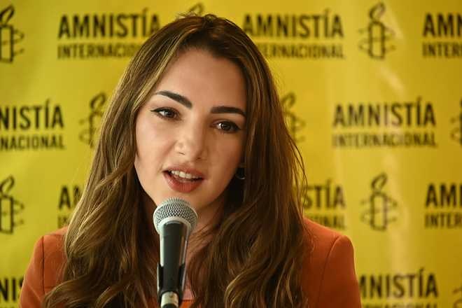 La actriz, de 29 años, habló ante la prensa acompañada por Paola García Rey, directora adjunta de Amnistía Internacional Argentina; Carla Andrade Junqueira, su abogada ante la justicia brasileña y Martín Arias Duval, su abogado en Argentina.
