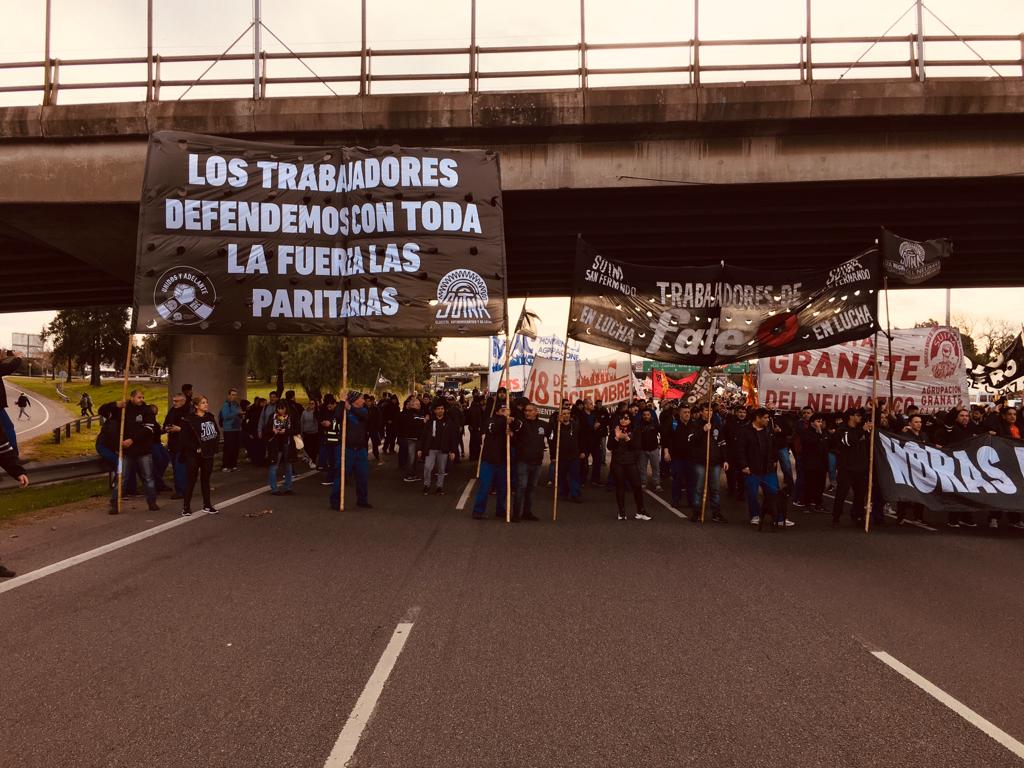 Los trabajadores de la industria del neumático están realizando un paro total con corte de la autopista Panamericana este miércoles. La acción se realiza en el marco de la jornada de movilizaciones que impulsa la izquierda a Plaza de Mayo, así como la CGT y la CTA que marchan al Congreso.